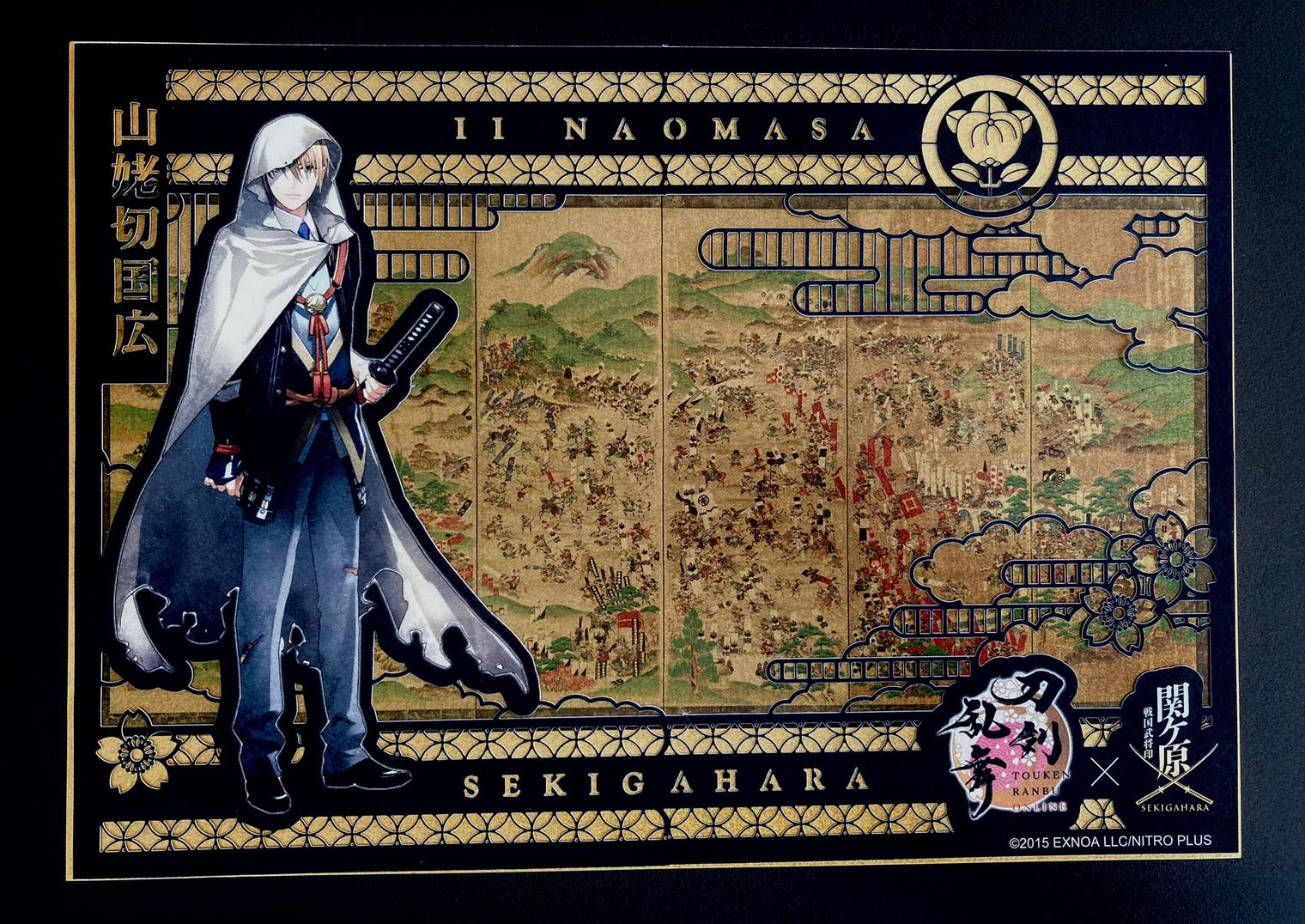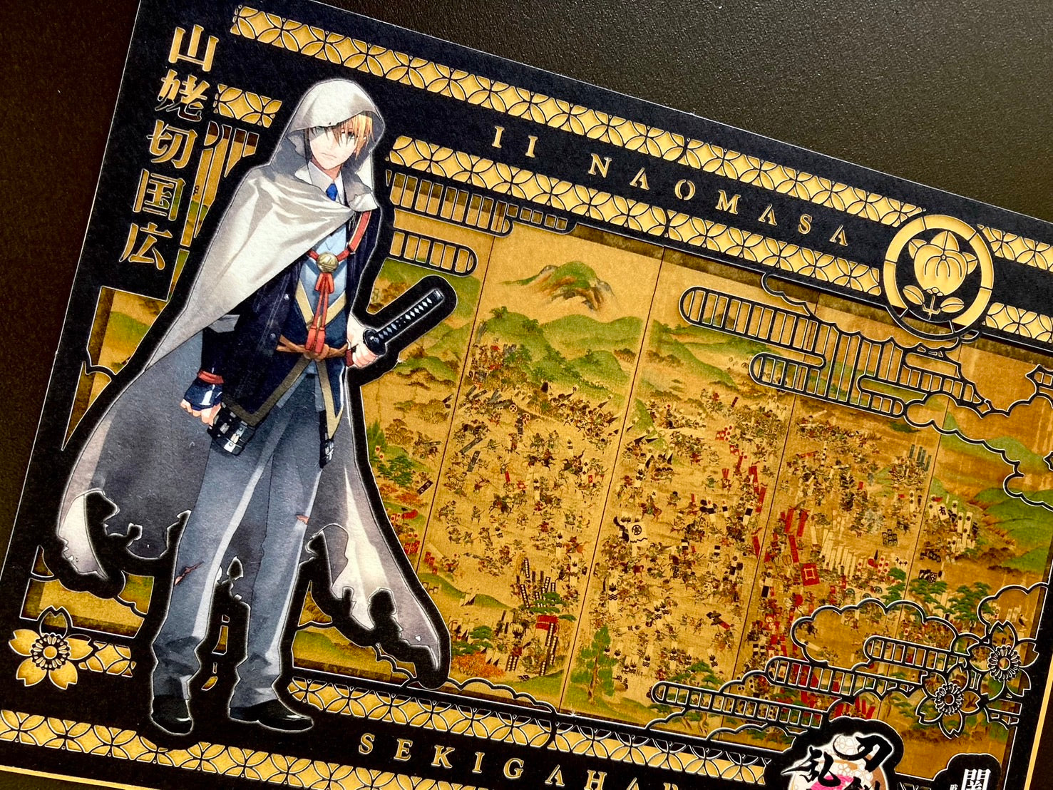 黄金の合戦図屏風絵に切り絵を重ね合わせた